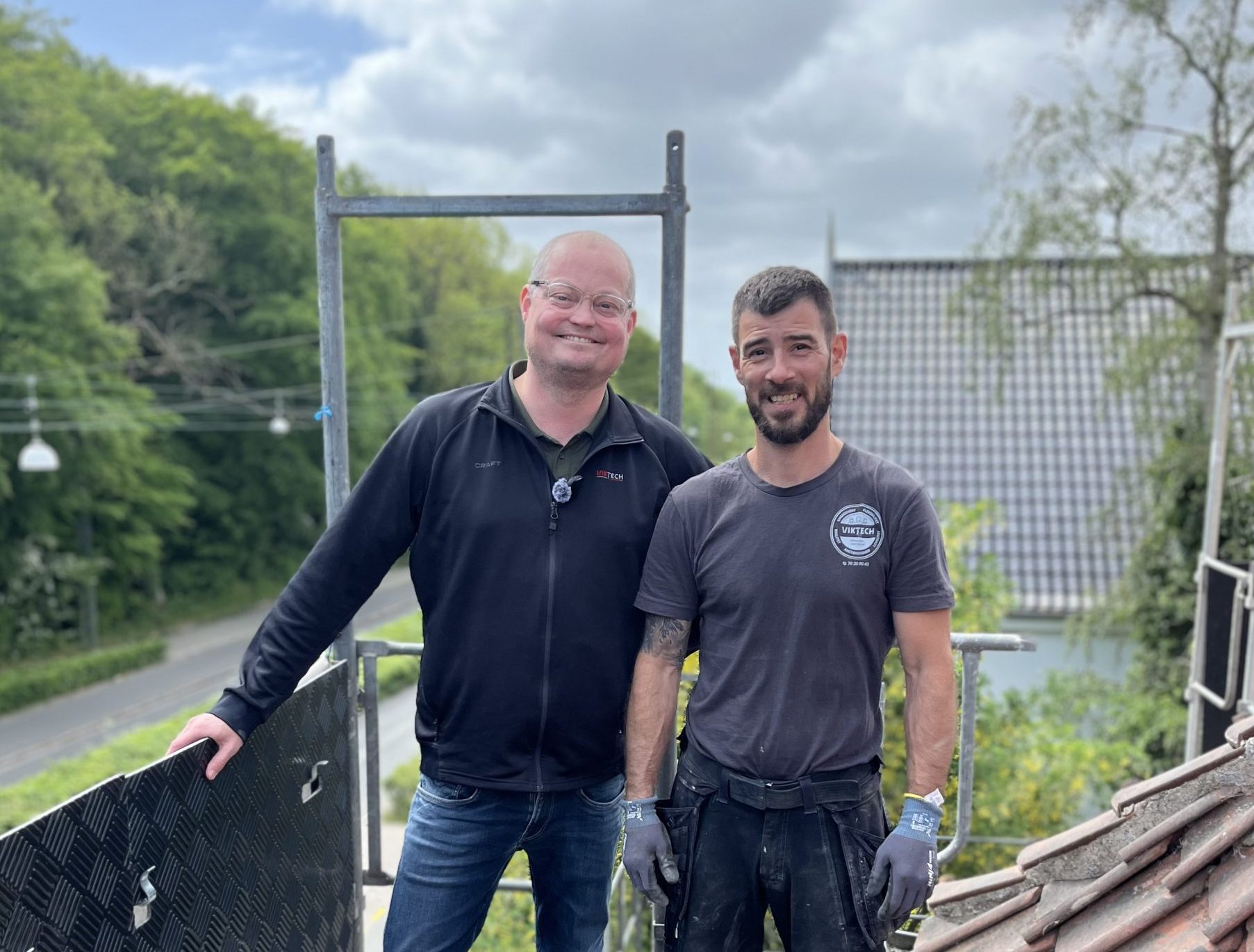 Resten af dagen bød på flere kundebesøg samt levering af tøj og materialer til en af vores medarbejdere. Undervejs blev der også tid til et hyggeligt pitstop i Aarhus, hvor Christian og Krestine holdt en lille sodavandspause sammen med nogle af vores folk, der arbejder på en større renovering af en flot villa. Der blev både delt grin og gode historier med de medarbejdere, der hver dag repræsenterer Viktech ude på byggepladserne. For selvom arbejdsdagen er både travl og varieret, er der altid plads til et øjebliks nærvær og en god snak.